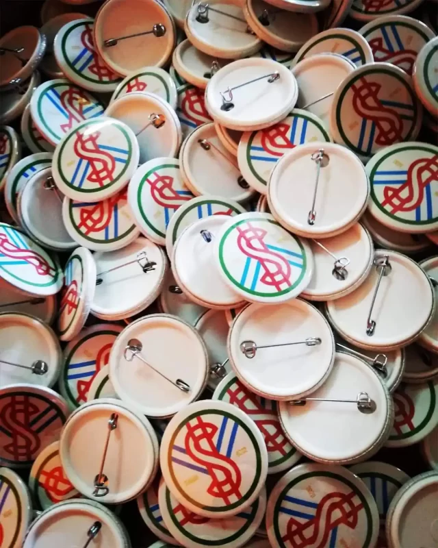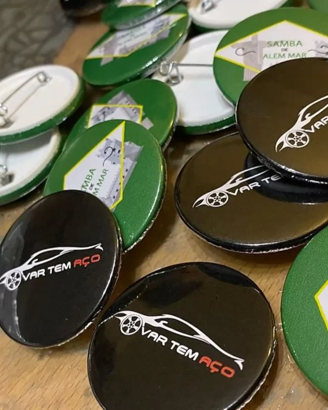 Personaliza “pins” ou crachás com a tua marca, empresa ou até a tua cara.