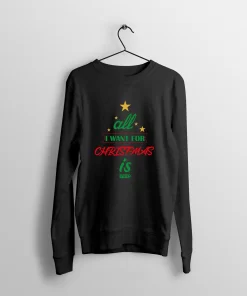 Sweat personalizada “All i want for Christmas” – Sweat 50% algodão 50% Poliéster de alta qualidade (Proudly Imagined & Designed In Portugal.). Utilizando as mais avançadas técnicas de personalização, garantimos que irá ficar satisfeito/a com resultado final. Aquela musica que não nos sai da cabeça… “All I Want For Christmas is youuuuu”! A melhor altura do ano chega e com ela o hit mais badalado de sempre. E tu? O que queres para este natal?